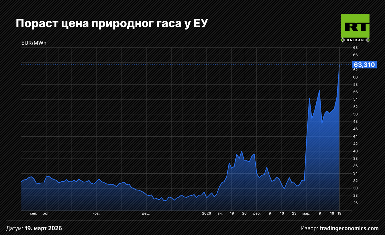 Напади иранских пројектила на гасни комплекс у Катару и напади дроновима у Саудијској Арабији и Кувајту изазвали су снажан раст цена нафте и гаса, док се глобална тржишта припремају за могући енергетски шок.