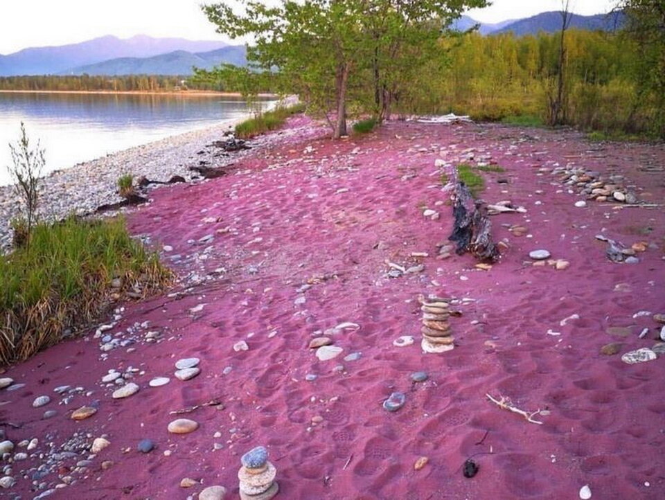 У граду Бајкалск, на самом југу језера Бајкал, налази се једна од најлепших плажа овог региона - њен песак обојен је најлепшим нијансама бордо боје, због чега је многи зову и плажом боје нара или Марсовском плажом. Песак на овој плажи није обичан, већ минерални, а у његов састав улази и прави алмандин, полудраги камен који називају још и гранат (гранат је на руском још и назив за нар, па је назив плаже још прикладнији). Многи верују да је овај песак и лековит, а да чудесна својства алмандина могу да вас напуне енергијом.