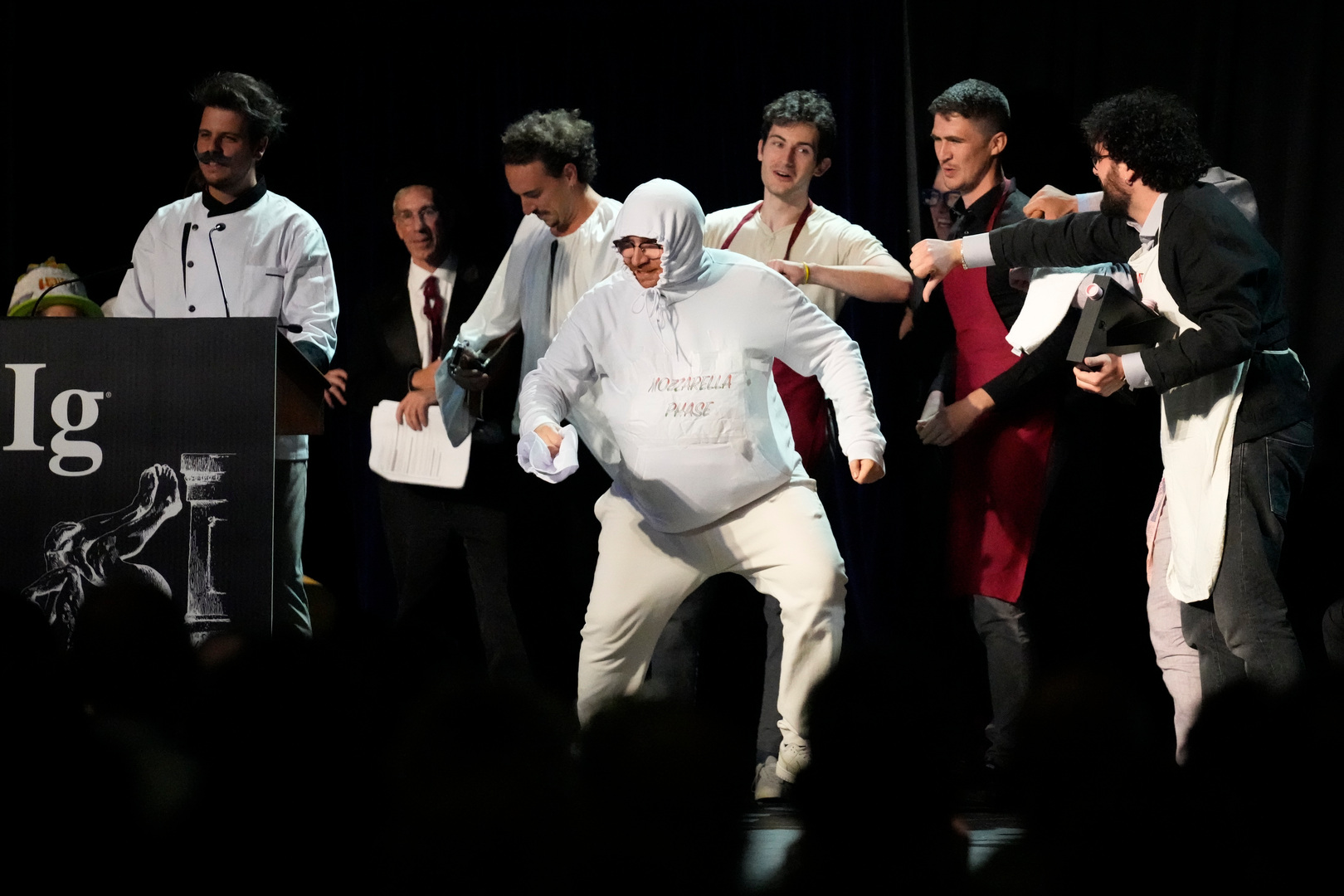 Међу осталим добитницима нашли су се и они који су тестирали популарну теорију да конзумирање алкохола може побољшати способност људи да комуницирају на страном језику. Додељене су и награде тиму истраживача који су проучавали сос за тестенине, односно како посебно избећи непријатно стварање грудвица.