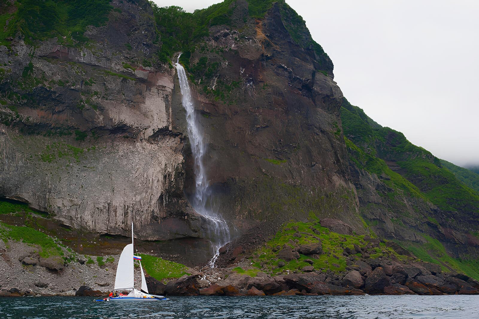 Један од најудаљенијих и најимпресивнијих водопада Русије налази се на острву Итуруп, на Медвеђем полуострву. Најбоље се види са Тихог океана, јер је копнени приступ изузетно тежак.