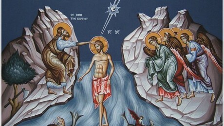 Кад је Јован погружавао Христа у воде реке Јордана, чуо се с небеса глас Бога Оца: "Ово је Син мој љубљени, који је по Мојој вољи". У Јордану је стајало друго Лице Свете Тројице, Син Божји, као Богочовек, а над Сином Божјим лебдео је Дух Свети у облику светлоснога голуба. То је било Богојављење.