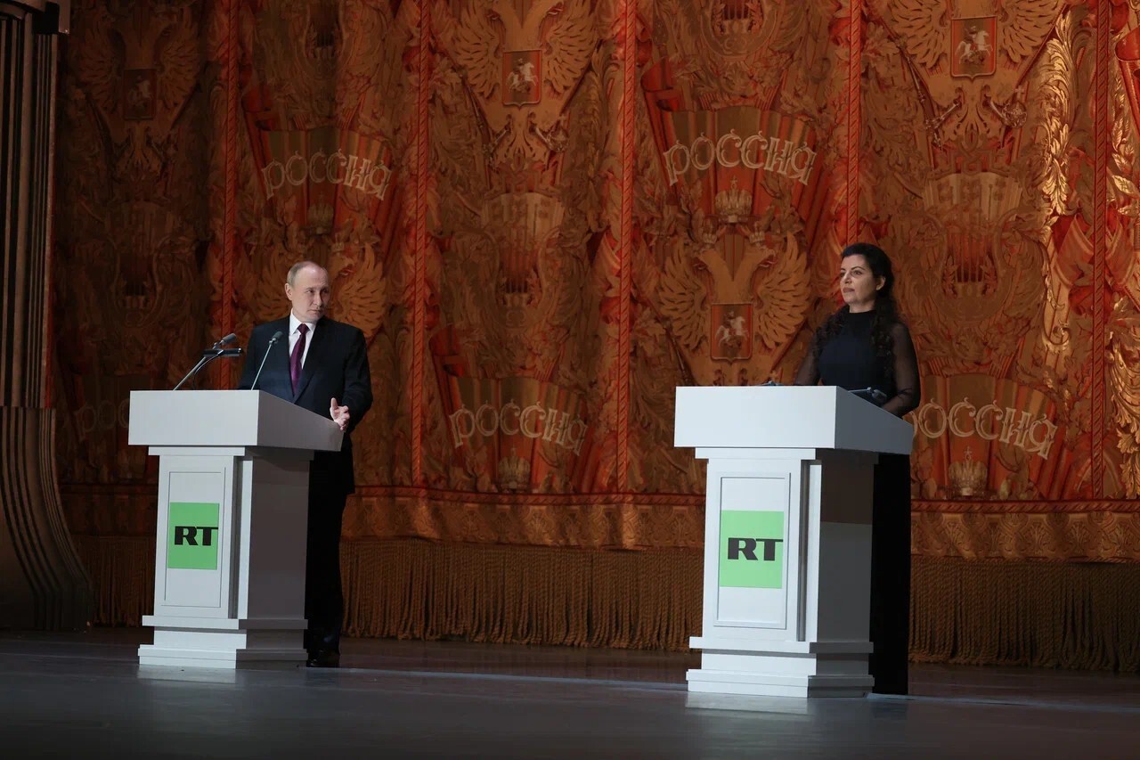 РТ је од идеје постао глобални бренд познат широм света, изјавио је председник Владимир Путин на прослави 20. година од оснивања РТ-а у Бољшој театру у Москви.