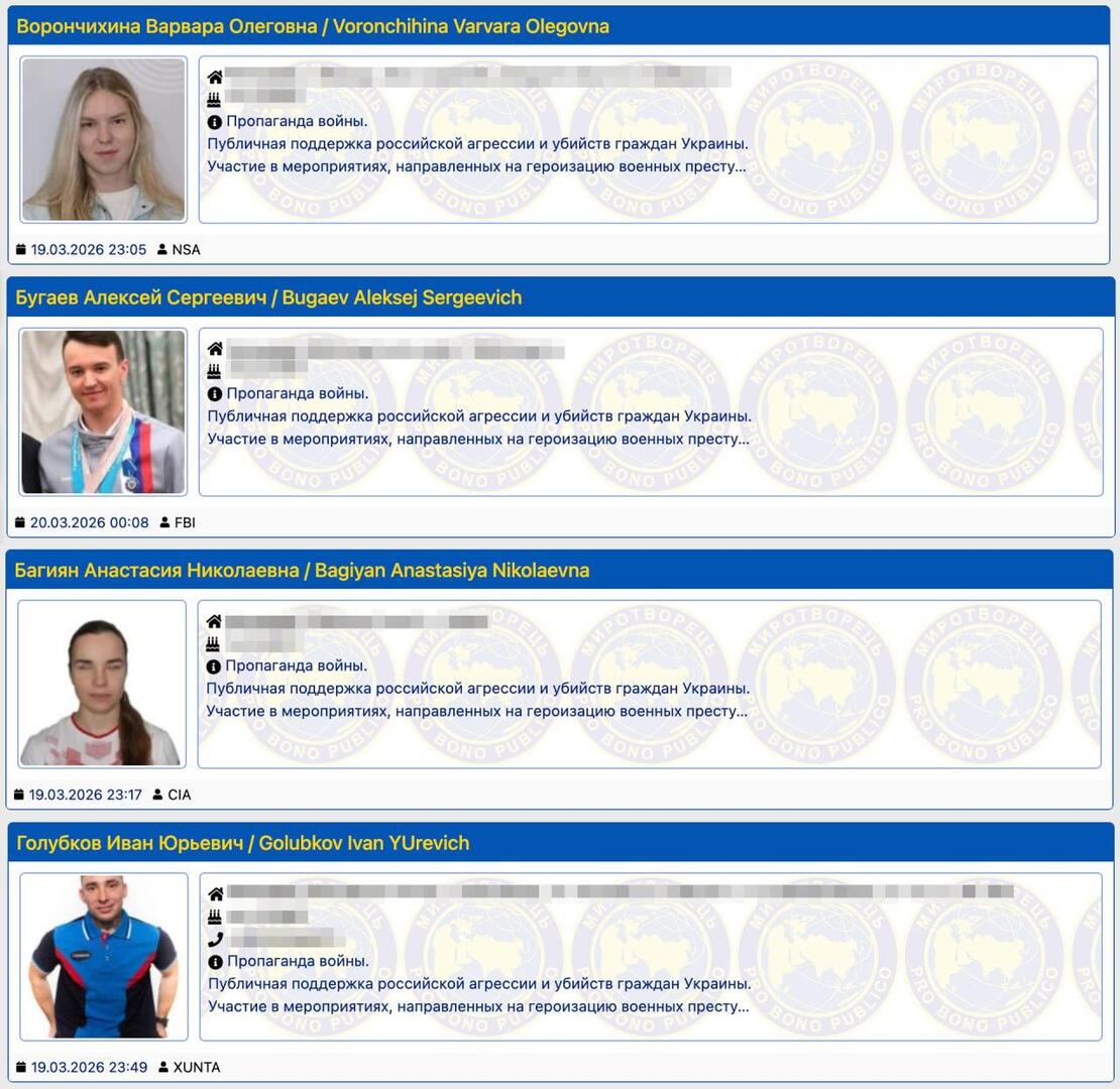 Међу њима су алпски скијаши Варвара Ворончихина и Алексеј Бугајев, као и скијаши Анастасија Багијан и Иван Голубков. Оптужени су за наводни покушај подривања територијалног интегритета Украјине и "подржавање агресије".