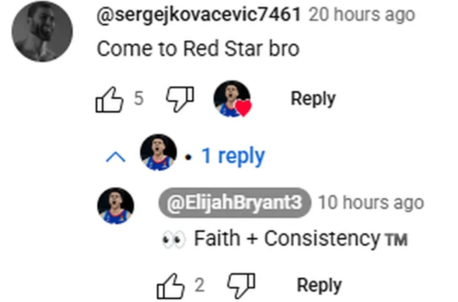 "Дођи у Црвену звезду, брате", написао је један навијач црвено-белих, а Брајант је одговорио са емотиконом очију, који се углавном корсти да се најави да се нешто занимљиво спрема.