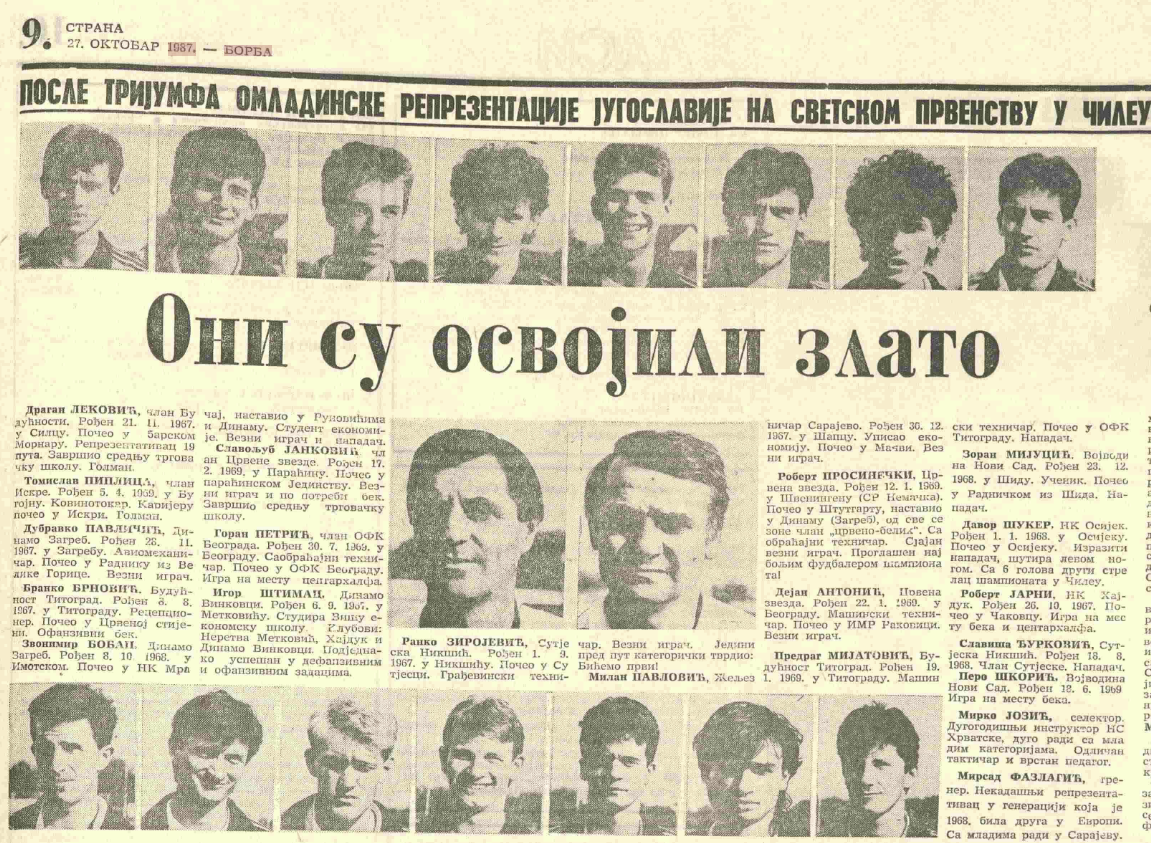 "Био је дуг пут, преко Франкфурта за Загреб, где нас је ФСЈ дочекао. И тада, као клинци какви смо били, хтели смо да задржимо торбе које смо добили током турнира, у којима су били наши дресови и тренерке. Један од људи из ФСЈ, Славко Шајбер, није нам то дозволио и рекао да ко год узме торбу, биће суспендован шест месеци. То је нама био шок. Ипак смо освојили Светско првенство, једна торба је била најмање што смо могли да добијемо. Међутим, господин Миљан Миљанић је дошао и рекао нам 'слободно носите, то припада вама и ви сте то заслужили.'"