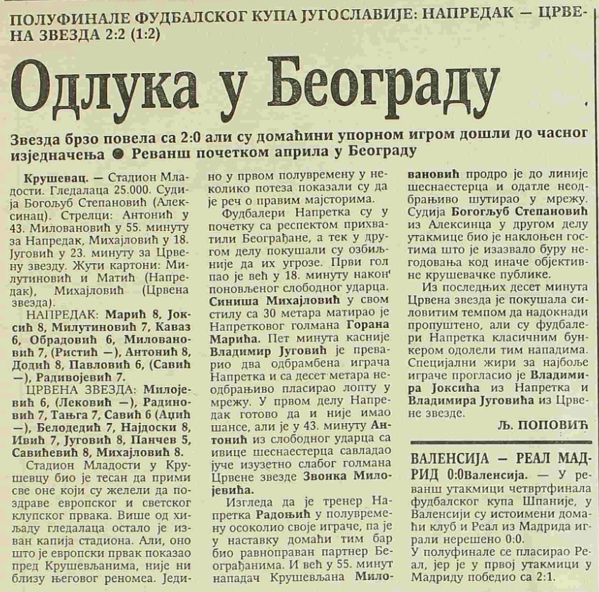 Као играч Напретка стигао је те '92 и до полуфинала Купа Југославије. А тамо – ривал је био још увек актуелни првак Европе и света. Антонићев сусрет са "његовом" Звездом. Први од два сусрета нарочито памти.