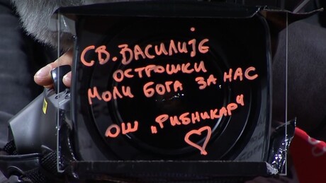 "Свети Василије Острошки, моли Бога за нас. ОШ Рибникар", написао је Ђоковић на камери, као што је обичај на мастерс турнирима после сваког тријумфа, а додао је и срце испод своје поруке. Oн је потом у изјави на српском језику у сузама пружио подршку свима које је задесила трагедија.