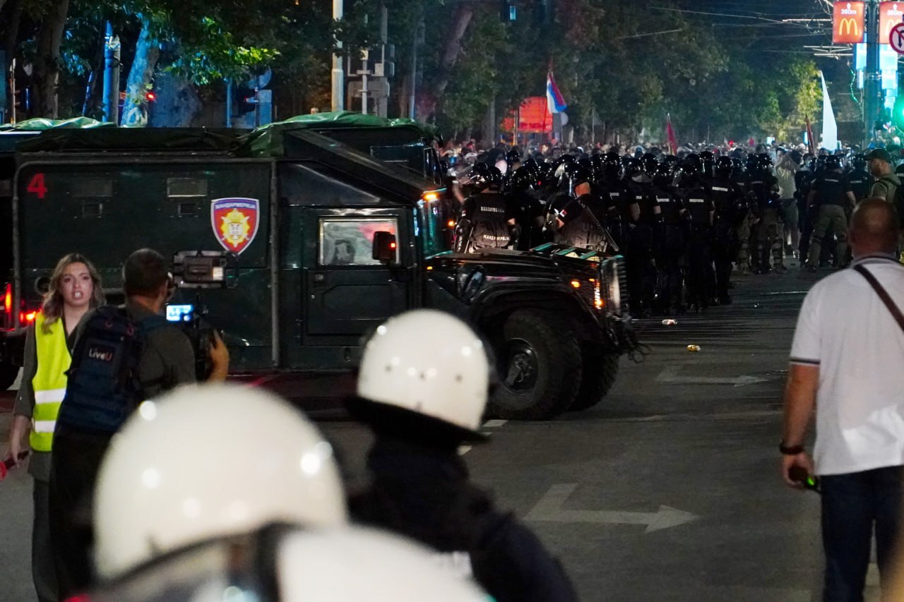 Напето је у Улици краља Милана где Жандармерија и даље потискује демонстранте. Кордон се налази у Немањиној улици, посебно испред зграде Владе Србије.