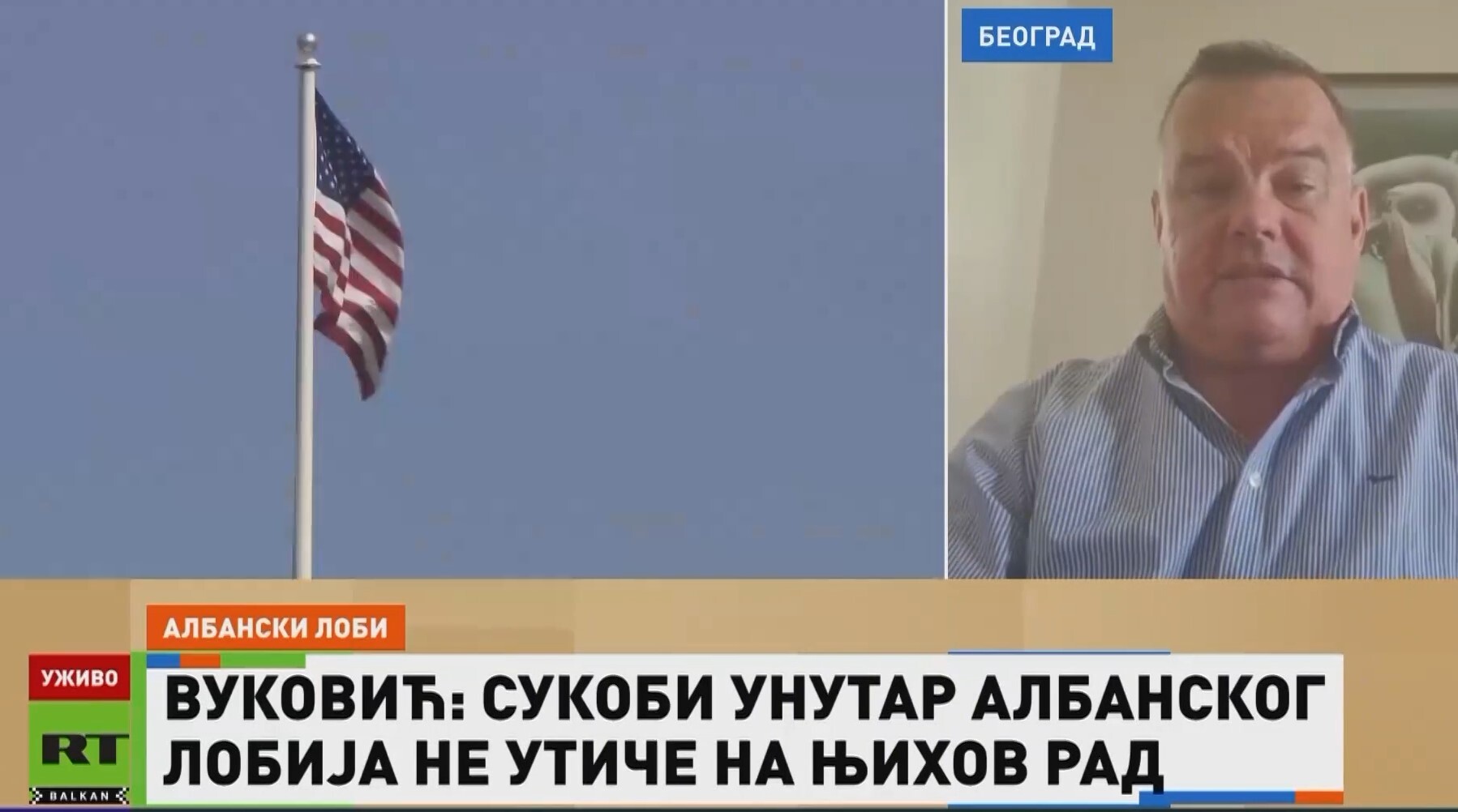 Председник друштва лобиста Србије Ненад Вуковић рекао је за РТ Балкан да долази до сукоба и у албанској дијаспори и у албанском лобију и око новца и око моћи, нагласивши да ти сукоби никад не буду разорни и деструктивни по њихово деловање, што је најбољи доказ да њихов шеф није међу њима, него их видите како их њихови ментори врате да раде на ономе што је заједнички циљ.