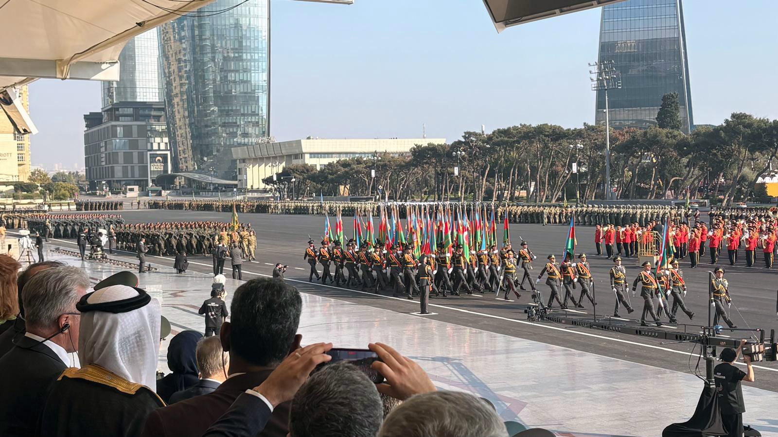 На паради су учествовале јединице копнене, ваздухопловне и поморске компоненте Оружаних снага Азербејџана.