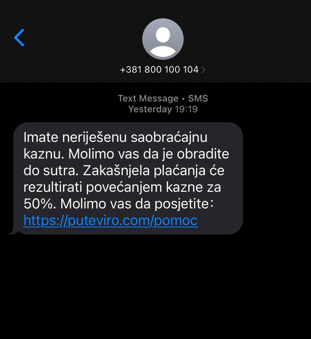 Јавно предузеће "Путеви Србије" поново скреће пажњу јавности на злонамерне СМС поруке које и даље стижу грађанима ради наводног прекорачења брзине, ненаплаћене путарине или другог саобраћајног прекршаја.