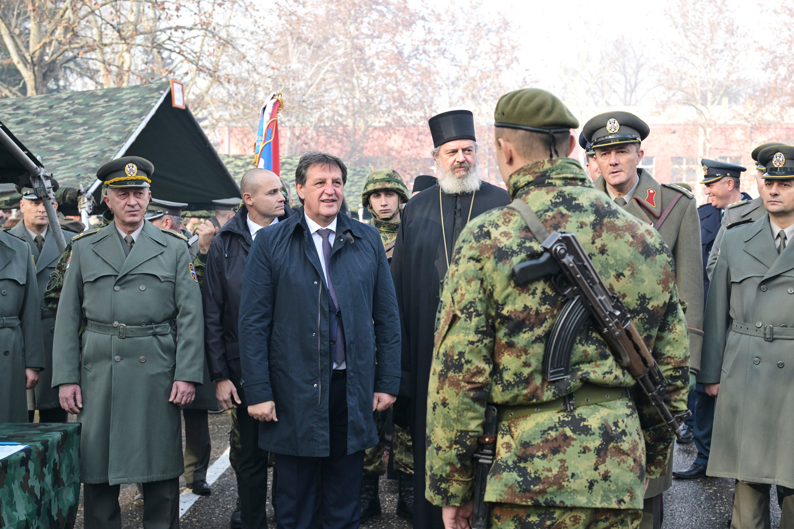Обраћајући се војницима, министар одбране је поручио да је наш народ поносан и частан, кроз богату историју није водио освајачке ратове, већ су генерације биле приморане да бране право на опстанак, корене, веру, слободу, достојанство и верност отаџбини, као и да су те вредности брањене и сачуване уз велике жртве.