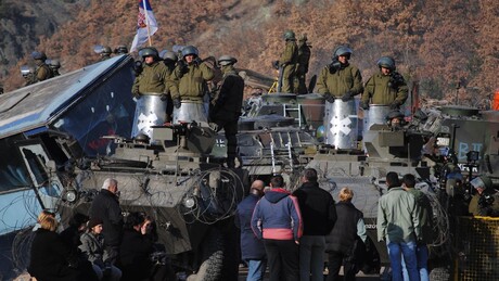 Који тренутак раније, са разгласа Кфора, Срби на барикади јасно су упозорени шта их чека ако се не склоне.