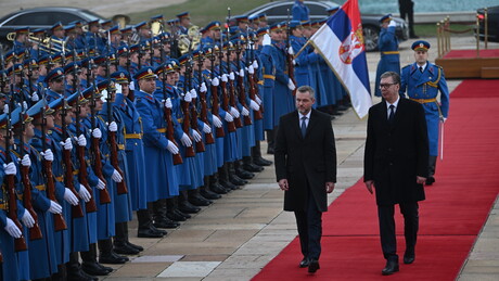 Претходно је Вучић испред Палате Србија у Београду, уз највише државне почасти, дочекао председника Словачке Петера Пелегринија, који борави у дводневној званичној посети Србији.