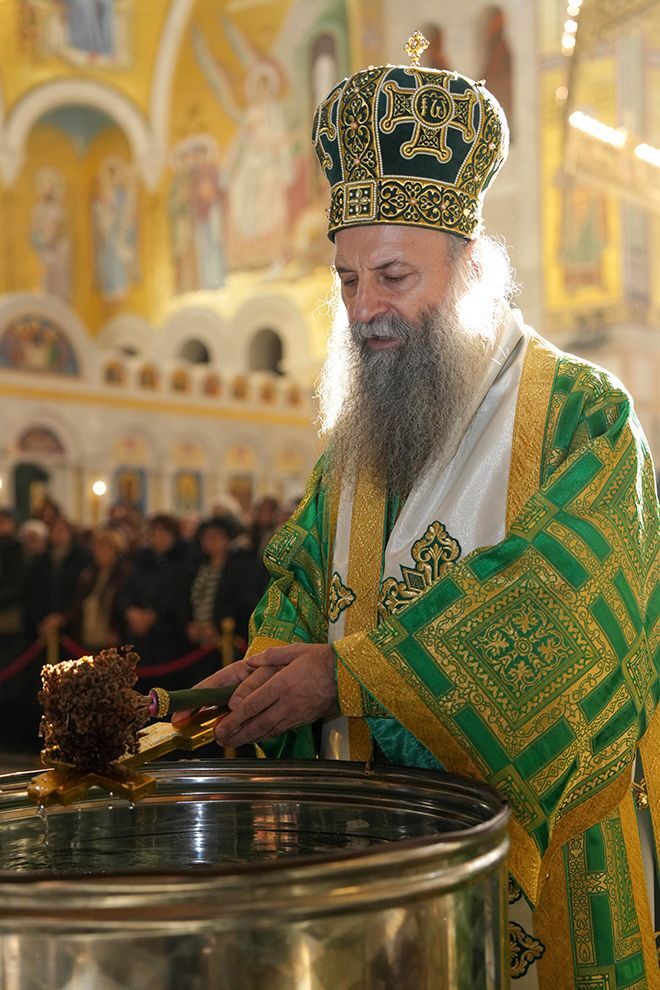Патријарх српски Порфирије је, поводом празника Богојављења, служио архијерејску литургију у Храму Светог Саве на Врачару. Током литургије, патријарх је истакао да овим празником обележавамо дан када се Бог јавио људима, на дан крштења Исуса Христа. Поручио је да је крштење симбол покајања и позвао вернике да се држе Божје речи у свом животу.