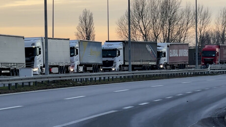 Превозници су блокирали обе рампе на излазном терминалу за теретни саобраћај на граничном прелаза Хоргош. Путнички саобраћај се одвија без проблема.