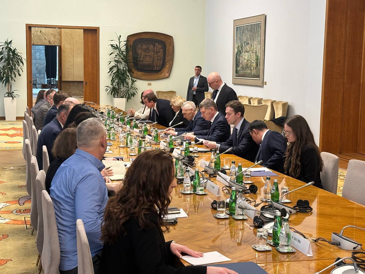Након тога почео је састанак представника Међувладиног комитета Србије и Русије, министра Поповића и министра Решетњикова у Палати "Србија".