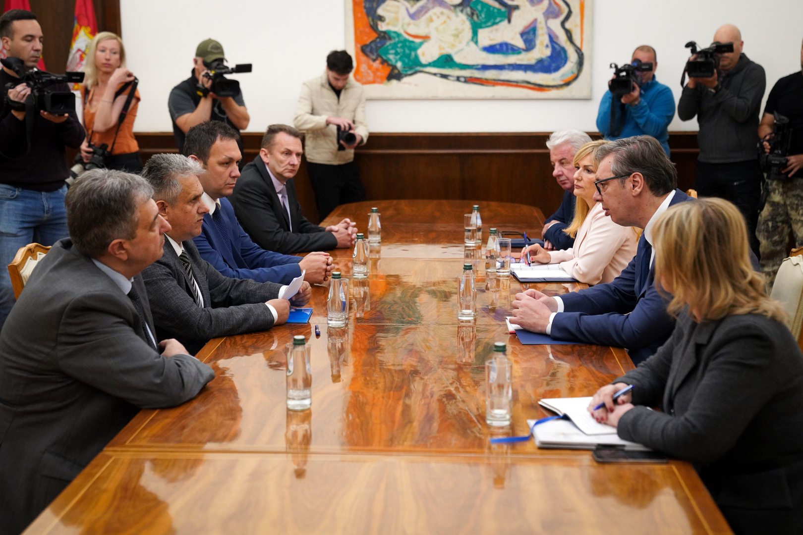 Председник Србије Александар Вучић састао се у Председништву, у оквиру консултација са политичким странкама, са представницима Алтернативе за промене и Уједињене сељачке странке.