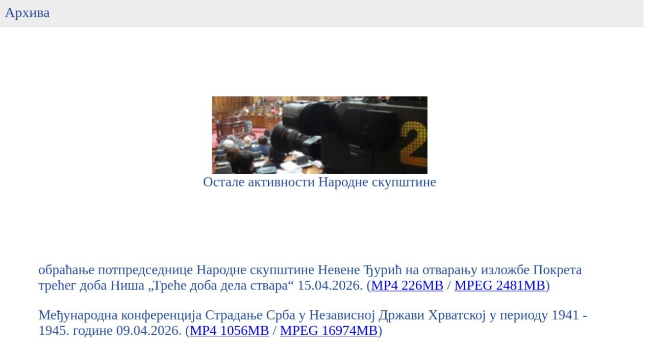 Организатори догађаја се питају да ли је посреди неажурност или намера да снимак остане затрпан само архивиран на сајту Скупштине Србије, а да нестане са Јутјуба.