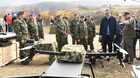 Српска војска користи најсавременије дроновеFOTO TANJUG/STRAHINJA ACIMOVIC Одговарајући на питање новинара на кога можемо да рачунамо у овом тешком времену, кратко је констатовао: "На себе, увек само на себе".