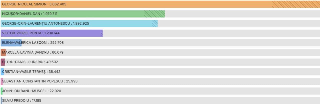 Тачније, Симион, који је председник Алијансе за уједињење Румуна (АУР), освојио је 3.862.405 гласова, док је за градоначелника престонице гласало 1.979.711 Румуна. Из података објављених јутрос на платформи АЕП, закључује се да гласови са само три бирачка места у иностранству још треба да се преброје.