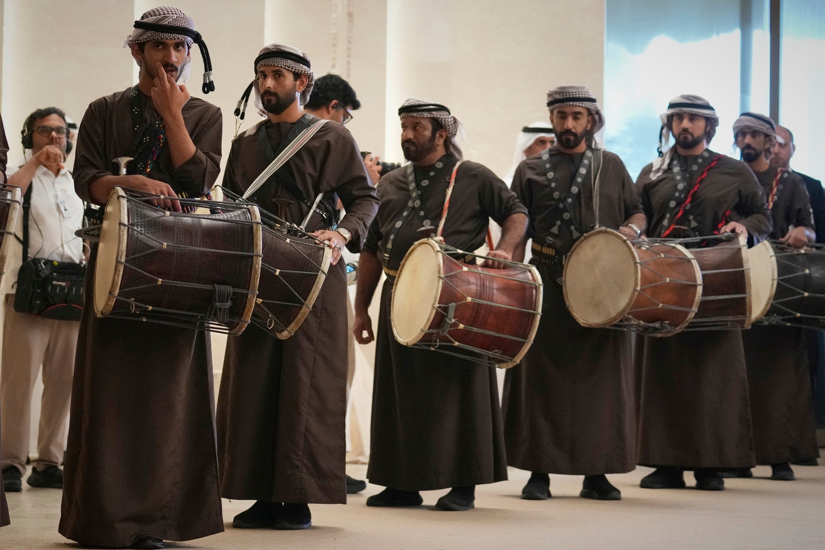 По доласку у Абу Даби, Трамп дочекан је уз богату церемонију - уз звуке бубњева, традиционалне песме, војну почасну гарду и заставе САД и УАЕ, пренео је Си-Ен-Ен.