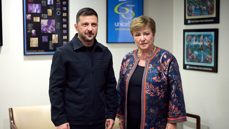 Владимир Зеленски се у Њујорку састао са директорком Међународног монетарног фонда (ММФ) Кристалином Георгијевом и васељенским патријархом Вартоломејем, саопштено је из Кијева.