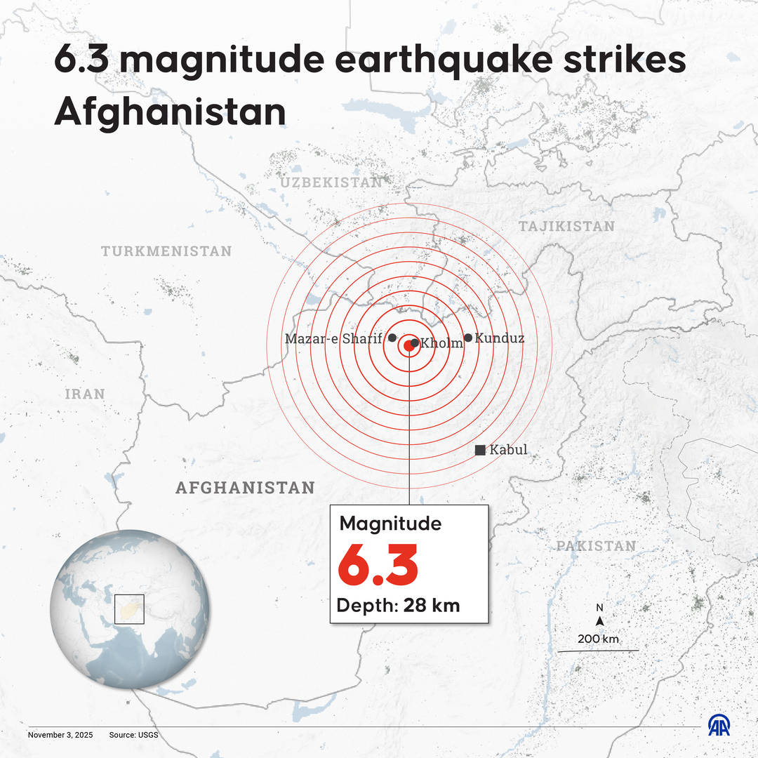 Амерички геолошки завод (УСГС) саопштио је да се земљотрес догодио на дубини од 28 километара у близини Мазари Шарифа, града са око 523.000 становника.