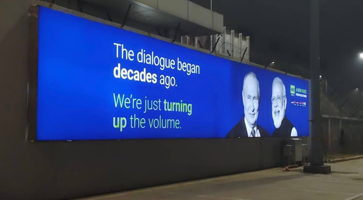 Рекламни плакати и екрани са програмом РТ осванули су на међународном аеродрому и Њу Делхију, у склопу припрема за покретање ТВ канала РТ Индија.