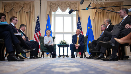Док су ЕУ царине на увоз из Америке углавном укинуте, америчке царине на увоз из Европе скочиле су са 1,2 одсто на 15 или чак 50 одсто, а Европска комисија је обећала улагања у САД у износу од 600 милијарди долара — средства која ће се, по свему судећи, преусмерити из немачке привреде.