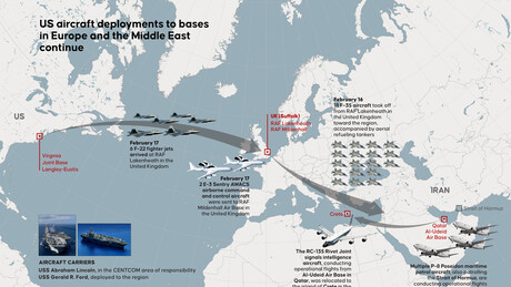 Стручњаци који су анализирали сателитске снимке оцењују да је тренутно америчко војно распоређивања надмашило оно које је виђено пре америчких удара на ирански нуклеарни програм у јуну прошле године наводећи да све указује на вишедневну борбену кампању, али без копнене инвазије.