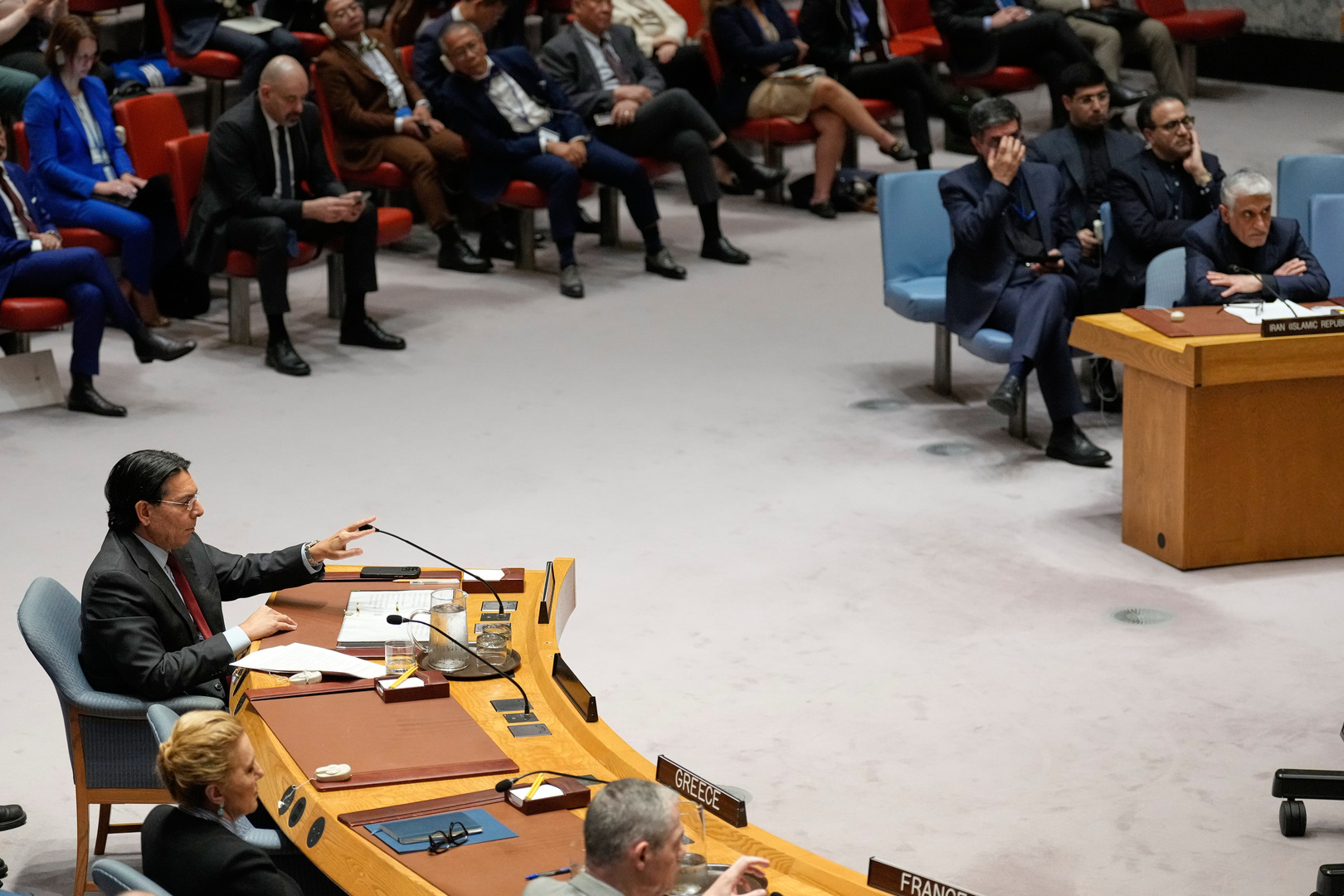 Tanjug/AP Photo/Seth Wenig Нацрт резолуције који је представио Бахреин у име Савета за сарадњу земаља Залива захтева од Ирана да одмах обустави нападе и констатује да такви напади представљају кршење међународног права и озбиљну претњу међународној безбедности.