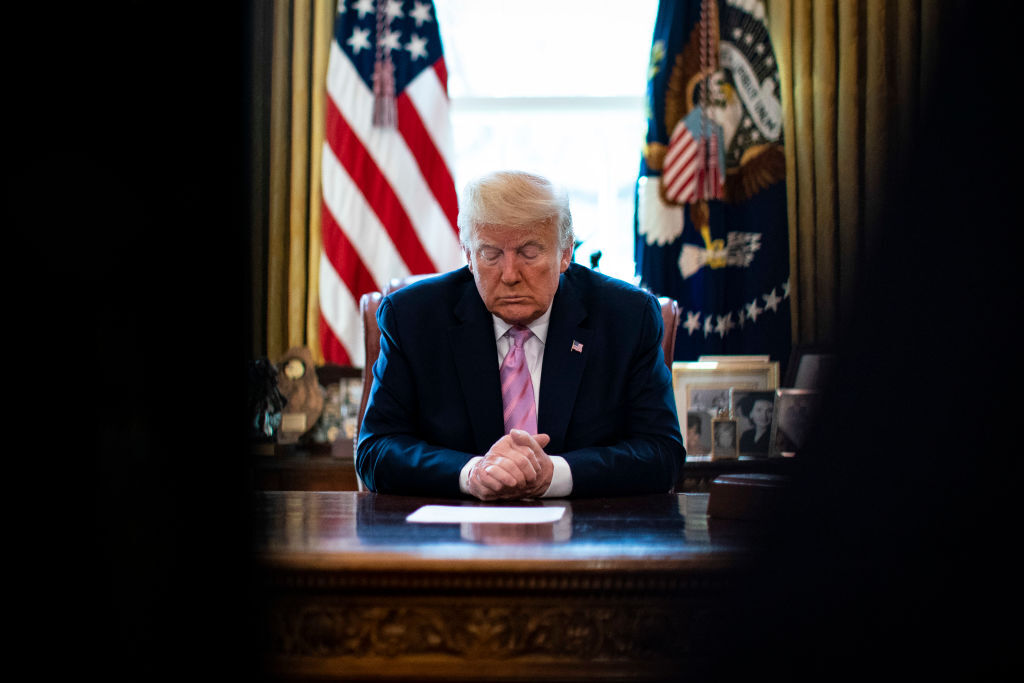 Трамп је 5. марта 2026. године седео за столом у Овалном кабинету Беле куће, са скрушеним изразом на лицу. Око њега се налазило 20-ак евангелистичких проповедника, пастора окупљених из свих делова Америке, који су изговарали екстатичне молитве. Овај ритуал је требало да омогући Трампу да добије свој "свети рат" против "зла".