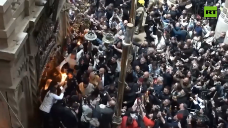 Након силаска Благодатног огња, јерусалимски патријарх пали свеће са њим и дели огањ свештенству и лаицима окупљеним у цркви. Међу њима је и делегација Фондације Светог Андреја Првозваног, која ће доставити огањ у Храм Христа Спаситеља у Москви за поноћну ускршњу службу, која се ове године одржава у ноћи између 11. и 12. априла.